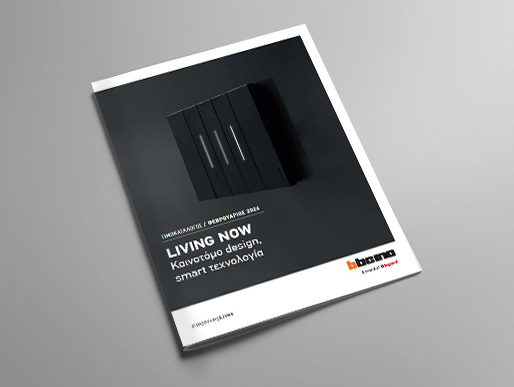 Έντυπο που παρουσιάζει τη σειρά διακοπτών Living Now της Bticino by Legrand