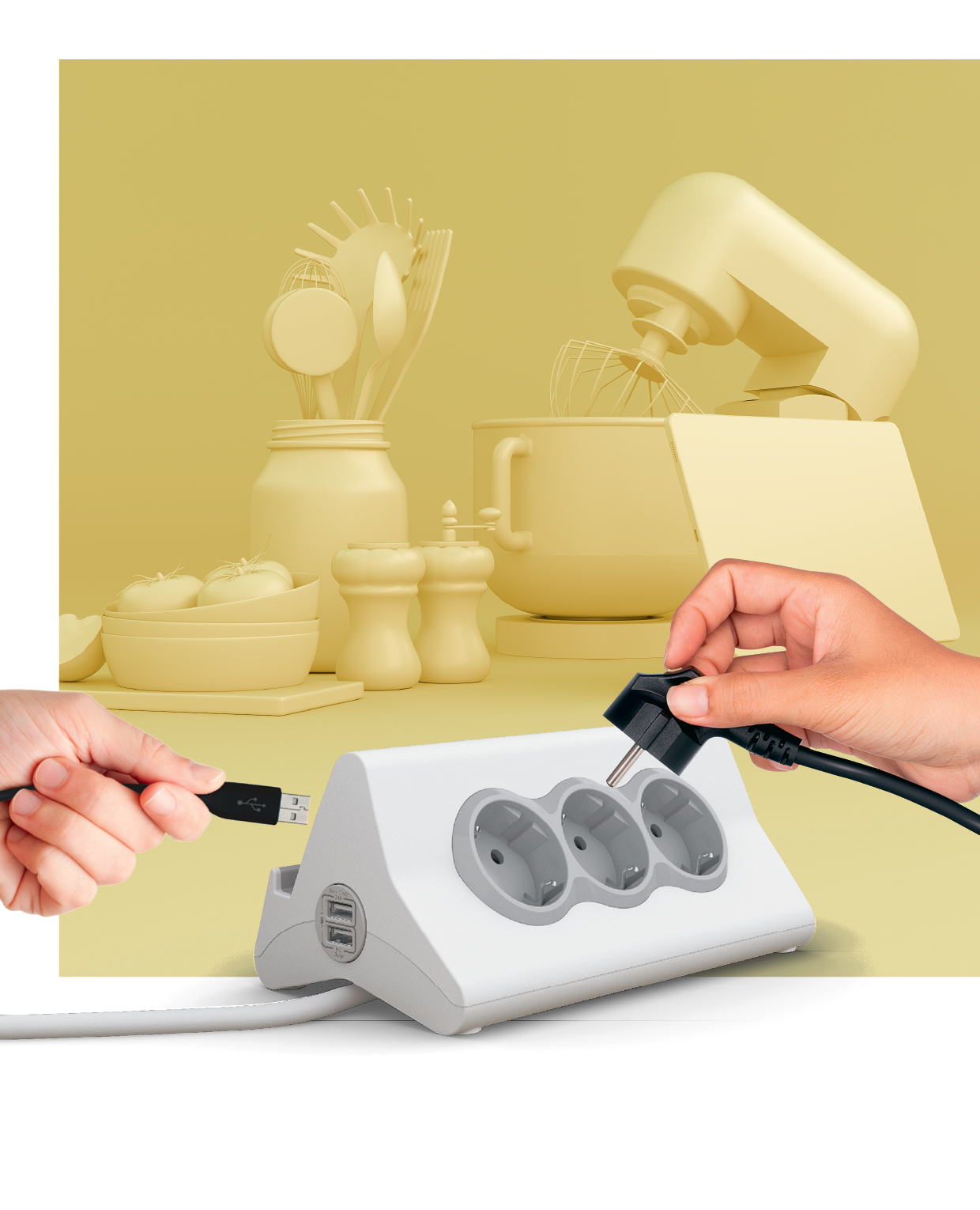 Πολύπριζο με έξυπνο σχεδιασμό, ιδανικό για την κουζίνα.